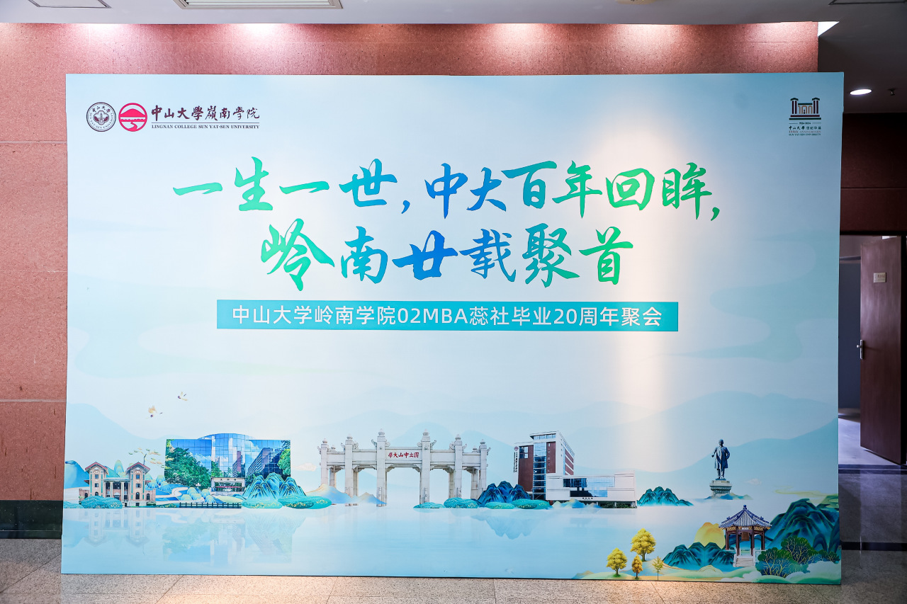 2024年7月13、14日,中山大学岭南学院02MBA蕊社的校友们毕业20周年的聚会恰逢中山大学百年诞辰,以“一生一世,中大百年回眸,岭南廿载聚首”为主题,校友们带着对往昔的追忆和对未来的憧憬,重返曾经学习和成长的地方,再次相聚。